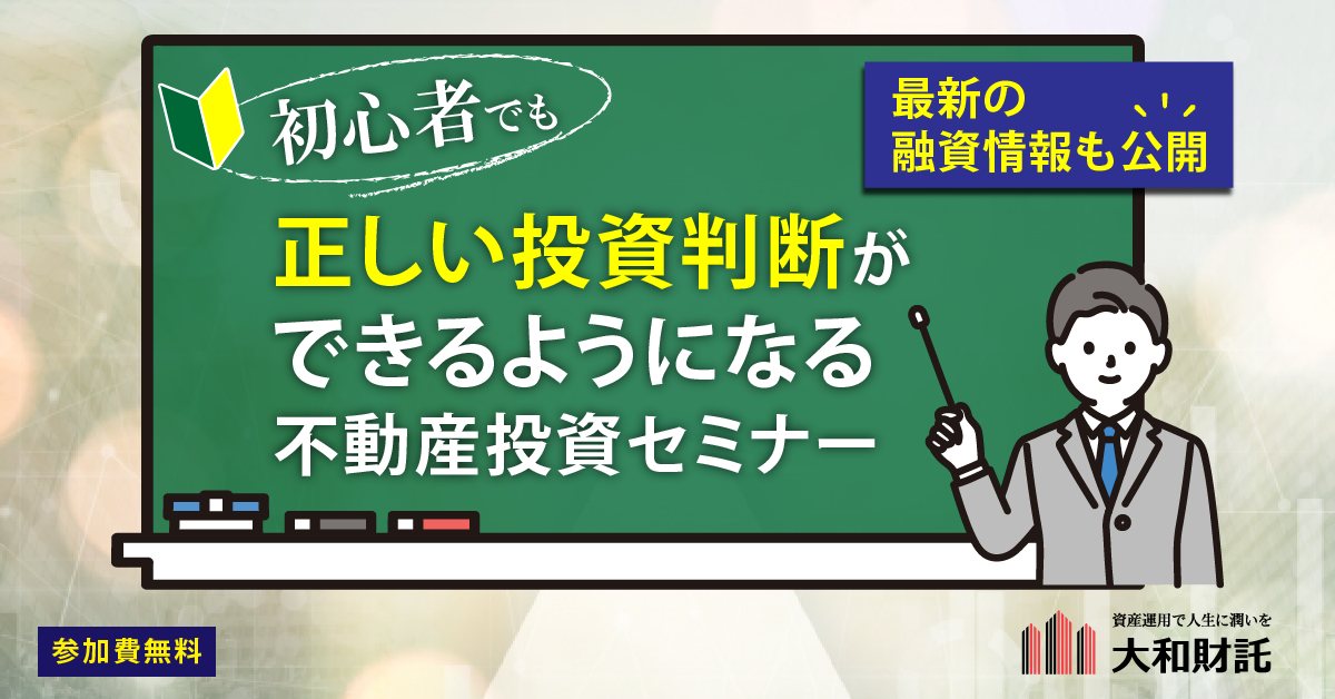 【大和財託ウェビナー】最新の融資情報も公開!初心者でも正しい投資判断ができるようになる不動産投資セミナー