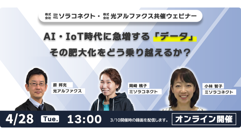 本ウェビナーでは、光アルファクス様をお迎えし、データ活用の最新動向と現場で起きている変化を解説いただきます。さらに、ミソラコネクトより、ストレージとSIMを融合させた新しいデータ活用モデルと協業ユースケースをご紹介します。