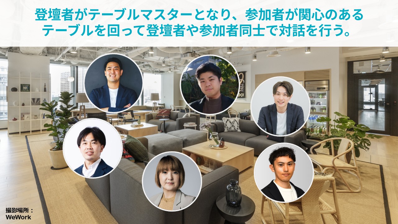 1つ1つのテーブルに各週で扱ったテーマを設け、関心のあるテーブルについて、登壇者や参加者との対話を通じて、自社の課題解決につながる知識やヒントを得ていただきます。