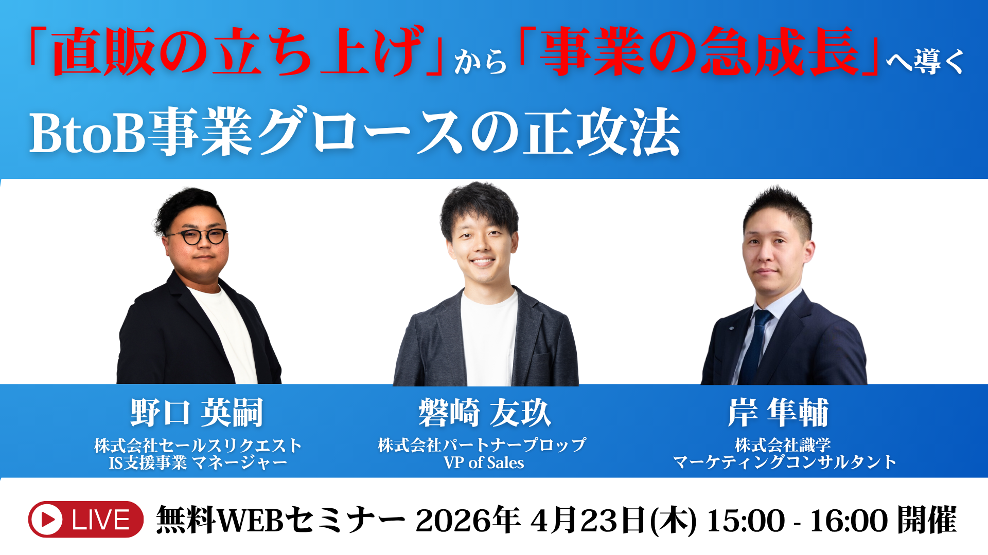 26.04.23【無料WEBセミナー】 「直販の立ち上げ」から「事業の急成長」へ導く、BtoB事業グロースの正攻法