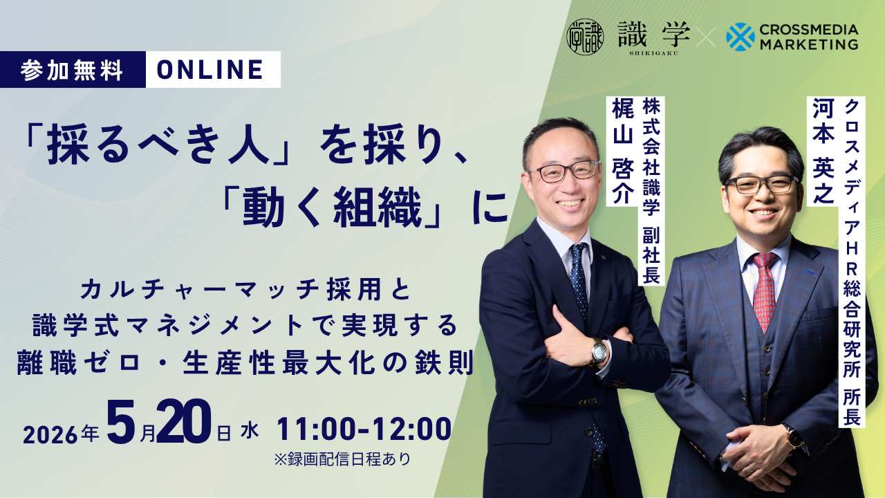 26.05.20【無料ウェビナー】「採るべき人」を採り、「動く組織」に~カルチャーマッチ採用と識学式マネジメントで実現する、離職ゼロ・生産性最大化の鉄則~