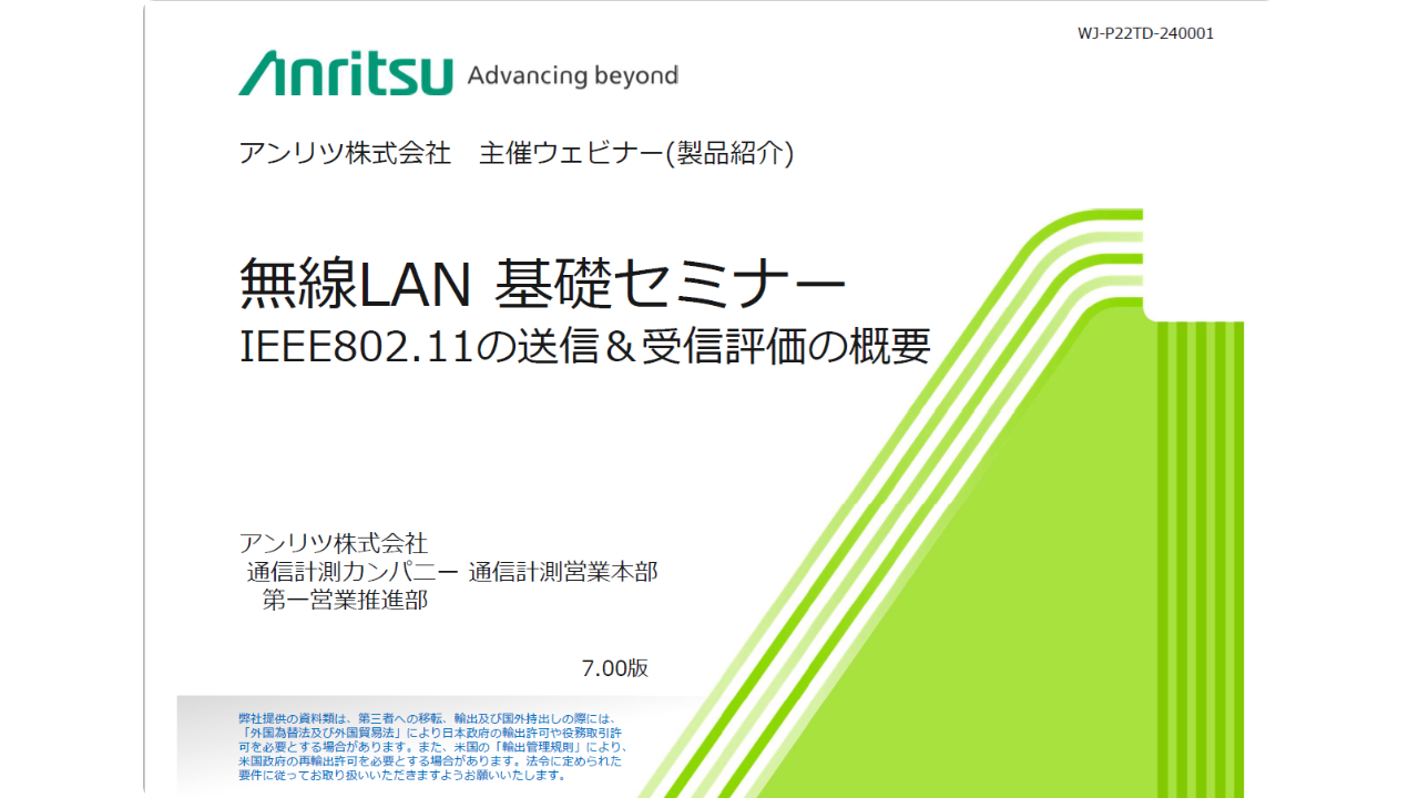 本セミナーは、「IEEE802.11の送受信評価をやったことがない」、「これから評価する」というご担当者様向けの『基礎的』な内容となっております。「つながりにくい、途切れやすい」などトラブルが発生する前に評価いただく基礎知識としてお役立ていただけると幸いです。