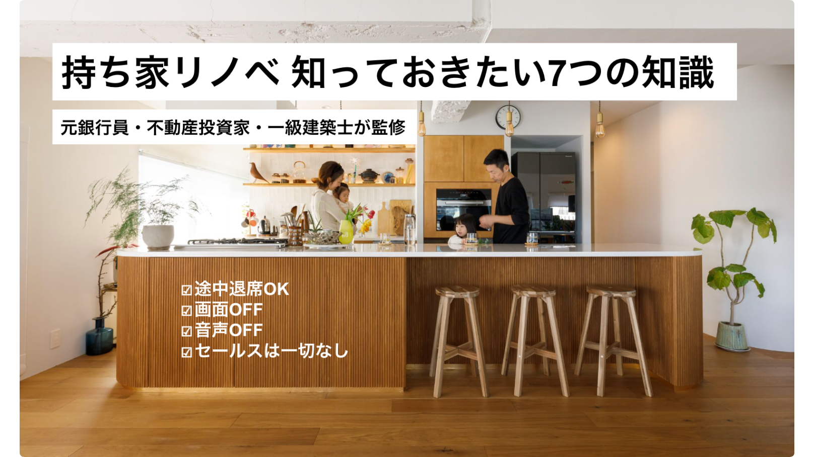 【ゼロリノベ】持ち家リノベするなら全員が知っておくべき7つの知識|無料オンラインセミナー