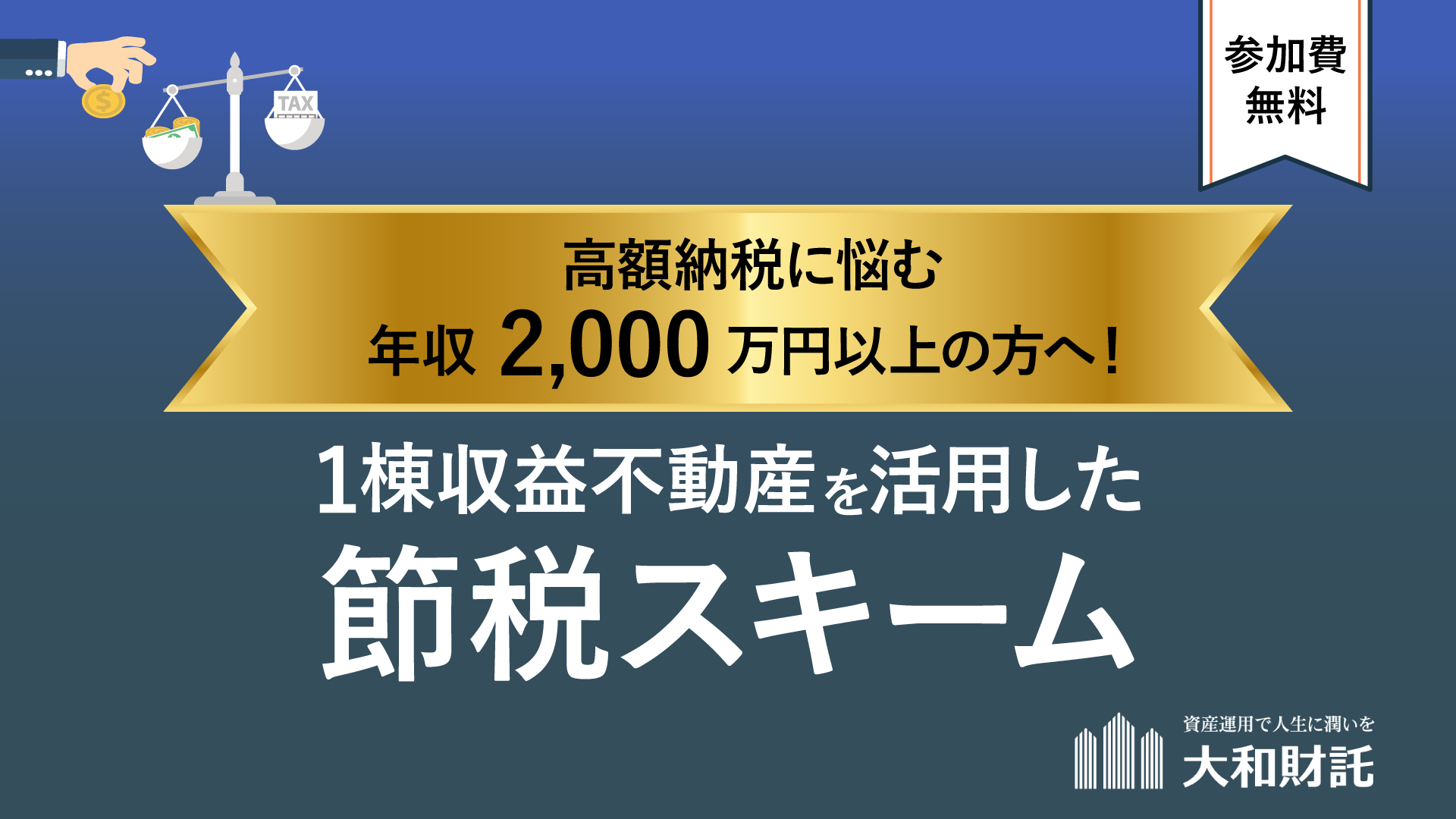 【大和財託ウェビナー】高額納税に悩む年収2,000万円以上の方へ!1棟収益不動産を活用した節税スキーム