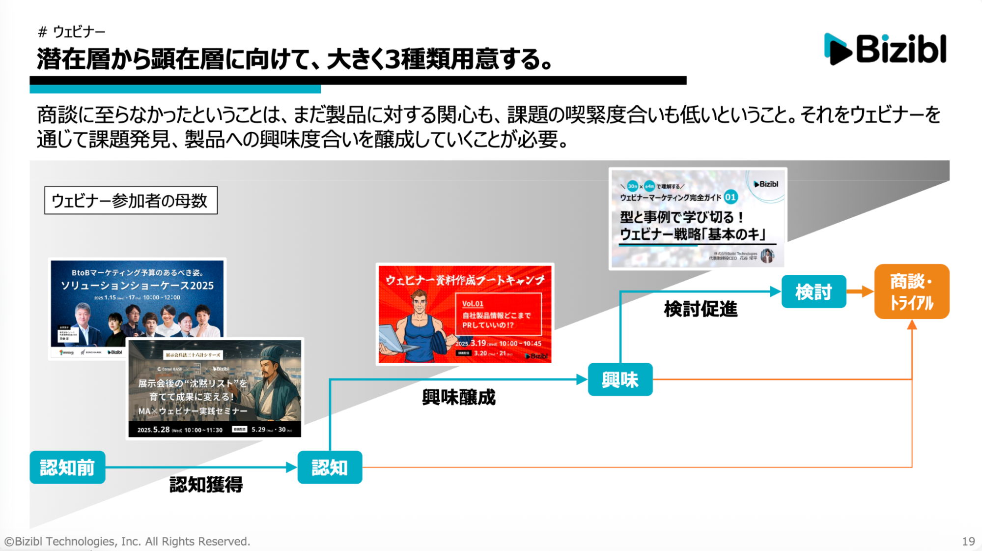 Biziblでは、ウェビナーを以下の3段階に分けて設計しています。