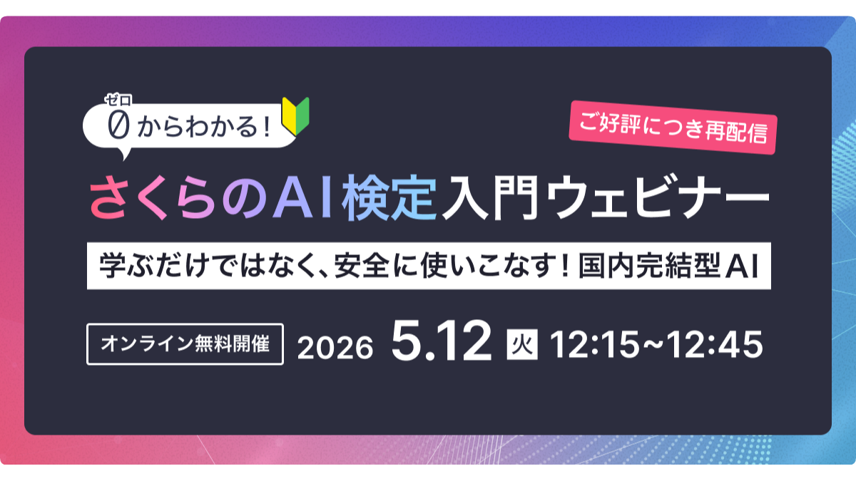 ご好評につき再配信!さくらのAI検定入門ウェビナー~学ぶだけではなく、安全に使いこなす!国内完結型AI~