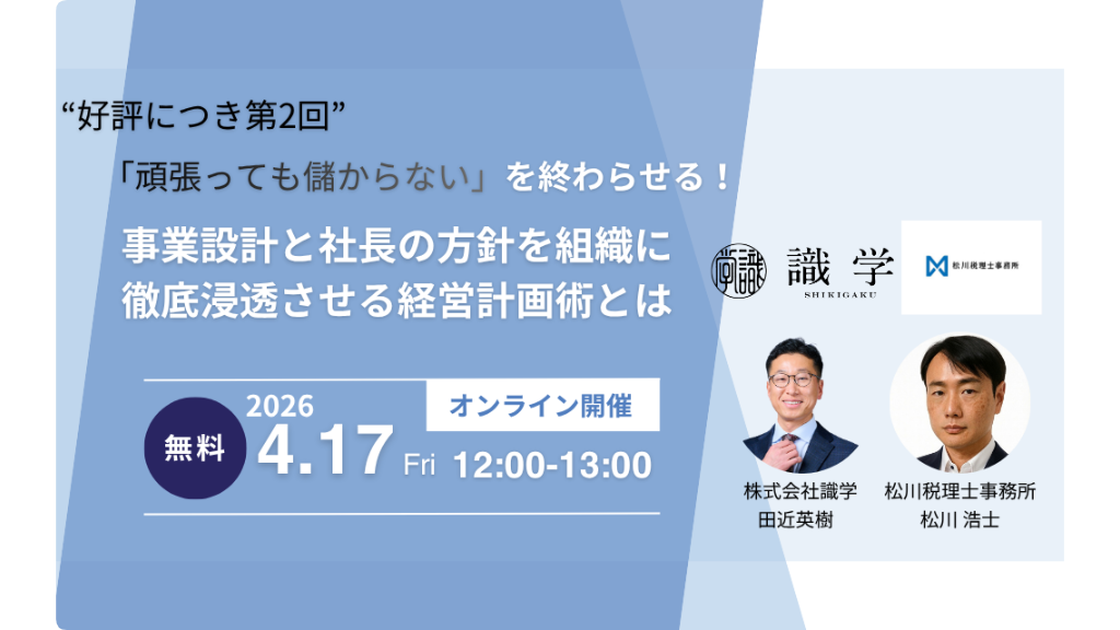 2026.4.17【無料WEBセミナー】"好評につき第2回"「頑張っても儲からない」を終わらせる! 事業設計と社長の方針を組織に徹底浸透させる経営計画術とは