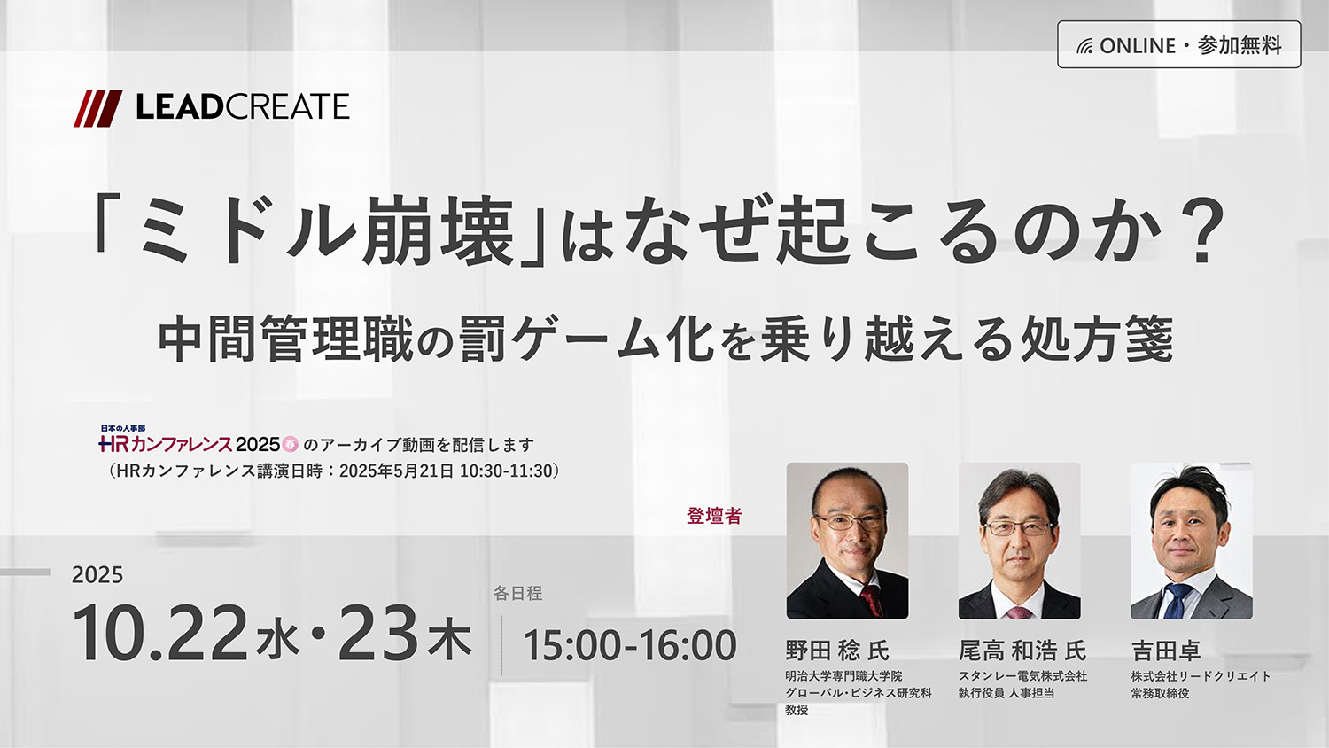 「ミドル崩壊」はなぜ起こるのか?~中間管理職の罰ゲーム化を乗り越える処方箋~(HRカンファレンス2025春-講演動画)