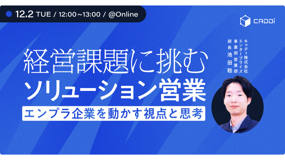 本セミナーでは、日々エンプラ企業と向き合うキャディのフィールドセールスが、”ソリューション営業”をテーマに、