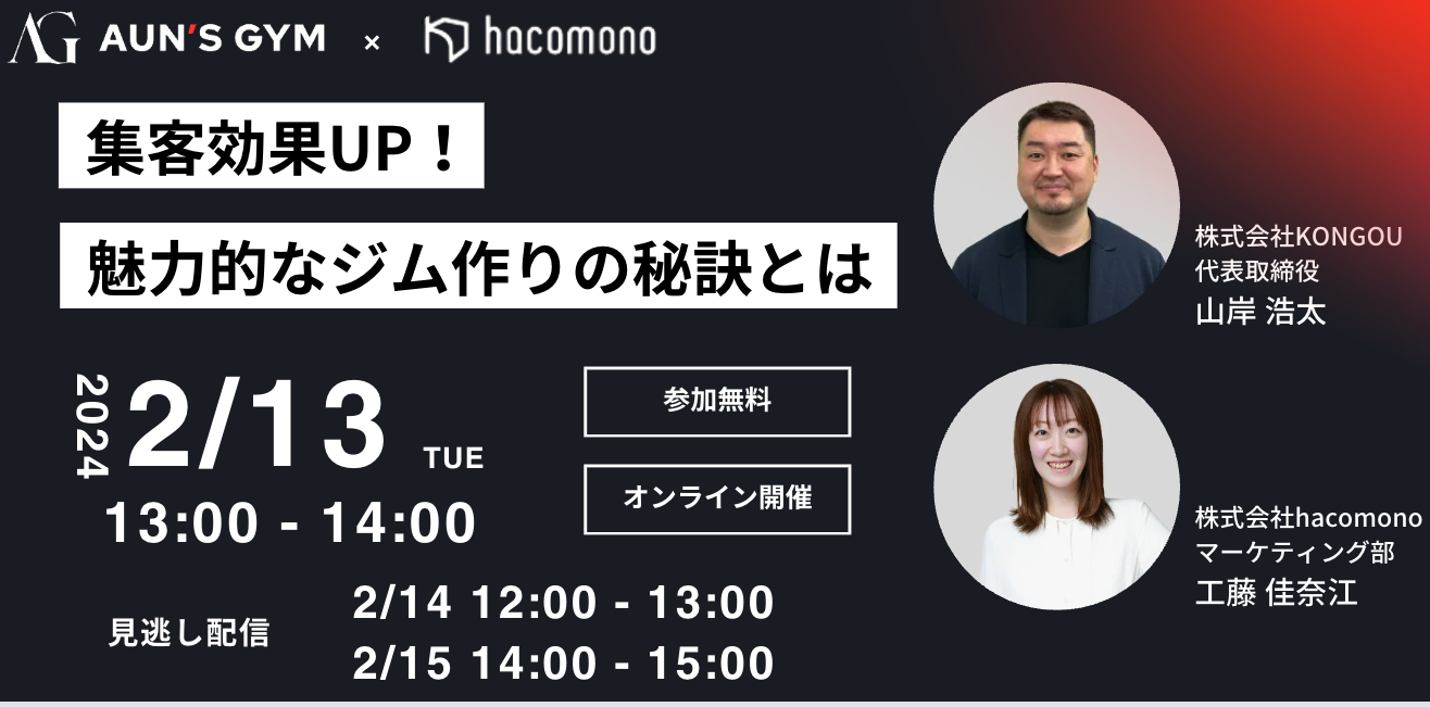 本セミナーでは、株式会社KONGOU 代表取締役 山岸様にご登壇いただき、集客に成功するジムづくりのポイントを事例を交えてお話しいただきます。