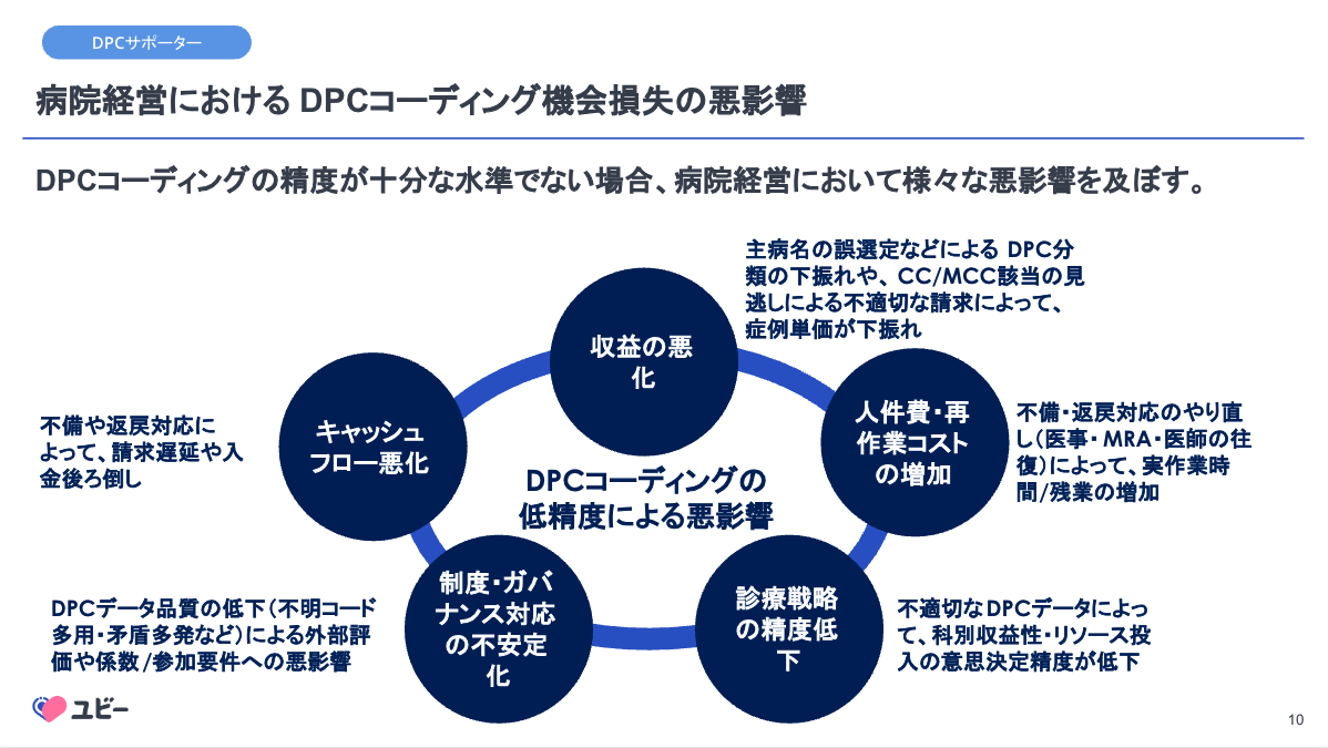 - 医療特化AIをDPCコーディング業務に活用し、業務効率化と収益改善を通じて病院経営改善を実現する具体的な手法とプロセス