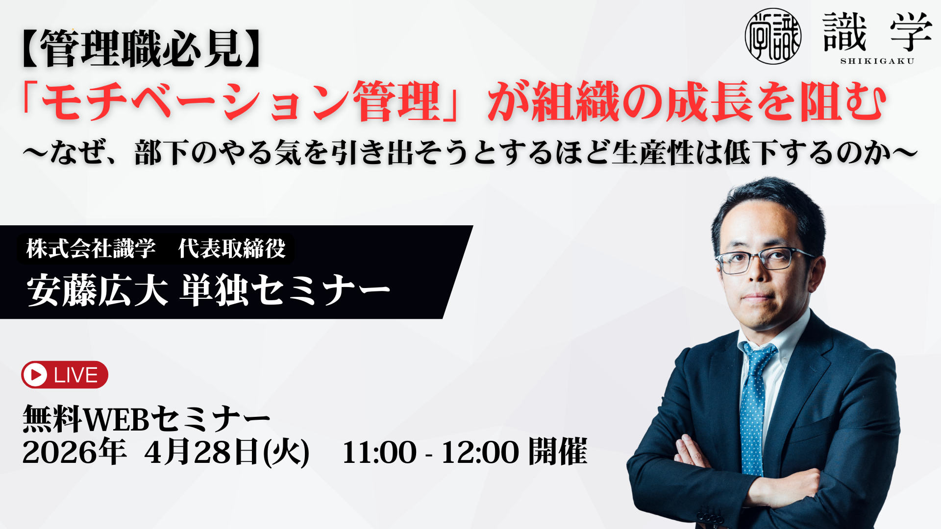 26.04.28【管理職必見】「モチベーション管理」が組織の成長を阻む ~なぜ、部下のやる気を引き出そうとするほど生産性は低下するのか~