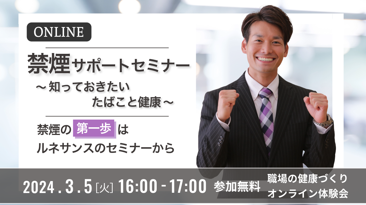 【職場の健康づくり オンライン体験会】禁煙サポートセミナー ~知っておきたい たばこと健康~