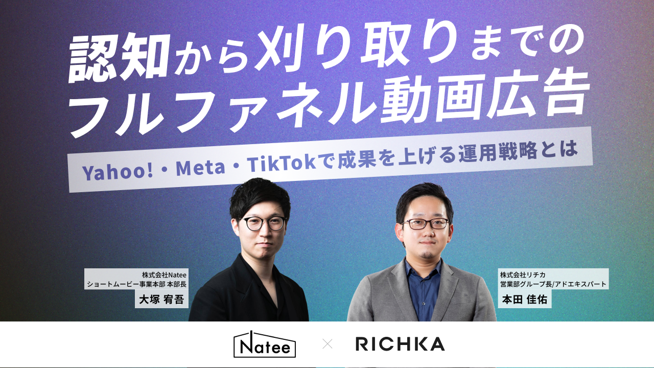 Yahoo!・Meta・TikTokで成果を上げる具体的な運用戦略について、理論から実例までをNatee×リチカの2社で徹底解説いたします。