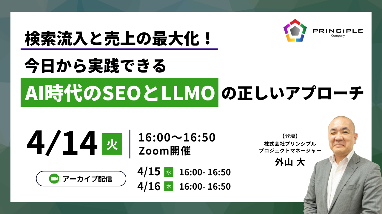 本セミナーでは、AI時代の検索環境を整理したうえで、「検索流入の最大化」と「売上最大化」を実現するための、SEOとLLMO(大規模言語モデル最適化)の正しいアプローチを解説します。