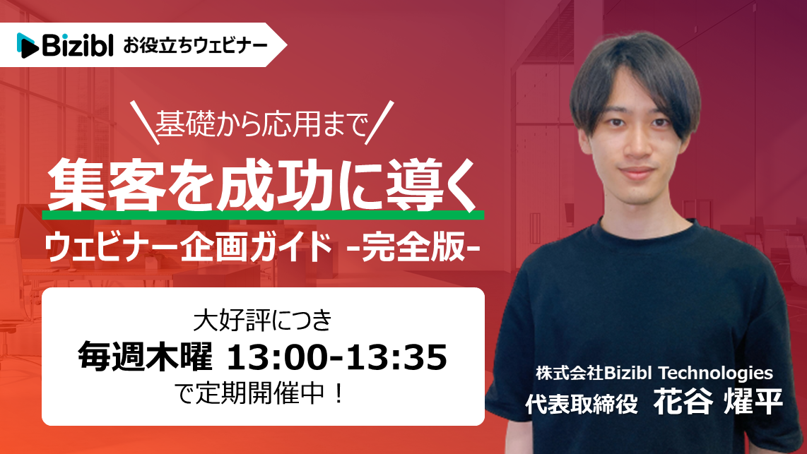 今回は、ウェビナーツールを提供し、自らもウェビナーマーケティングをゼロから立ち上げた株式会社Bizibl Technologies代表取締役の花谷が、