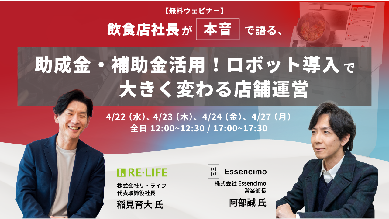 本ウェビナーでは、その当事者である中華料理店「Lei can ting」を運営する株式会社リ・ライフ 代表取締役社長 稲見育大 氏が登壇。申請から導入までのリアルな裏側を公開します。