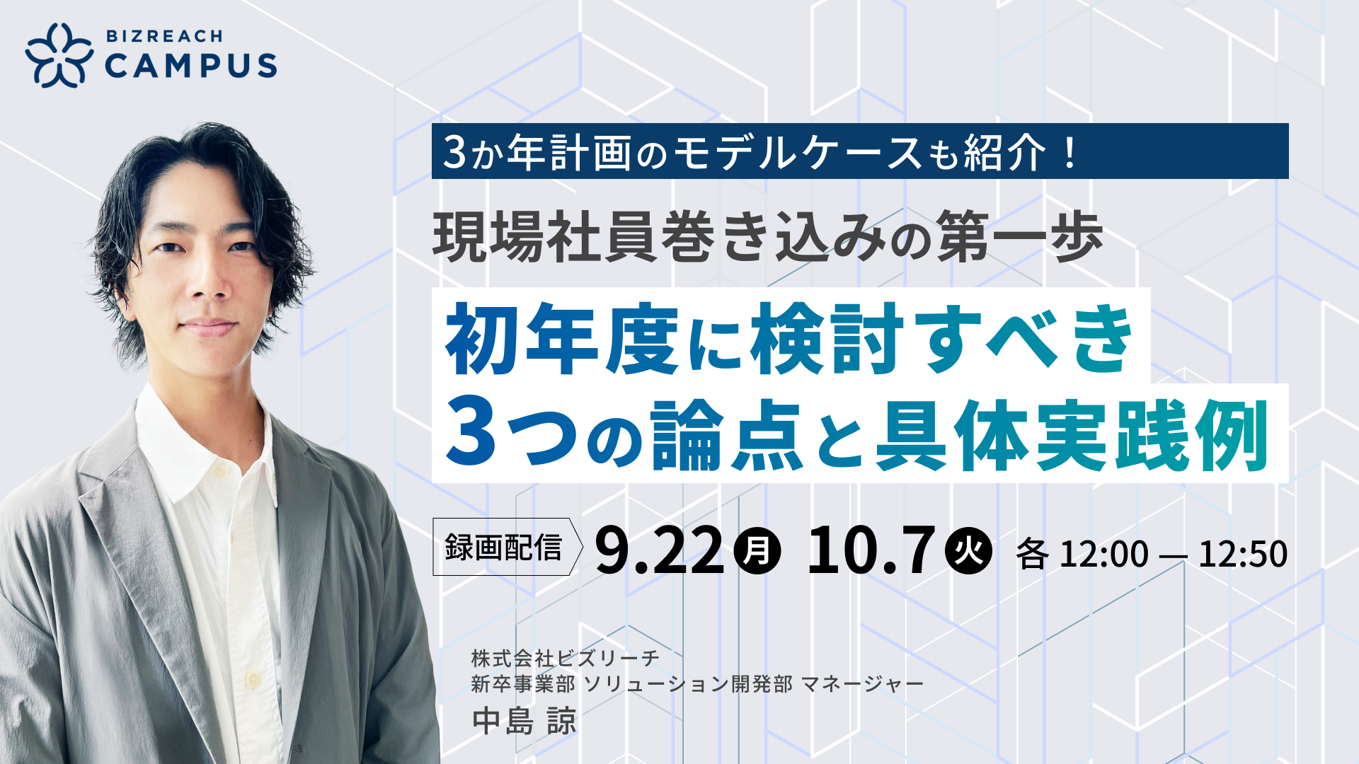 しかし、現場の理解・協力をどう得るか?負担感を最小限にしながら、効果的な関与を実現するには?本ウェビナーでは、3か年スパンで考える採用体制構築のモデルケースを紹介しながら、初年度に押さえておくべき3つの論点と、各社の取り組み事例等をお届けします。